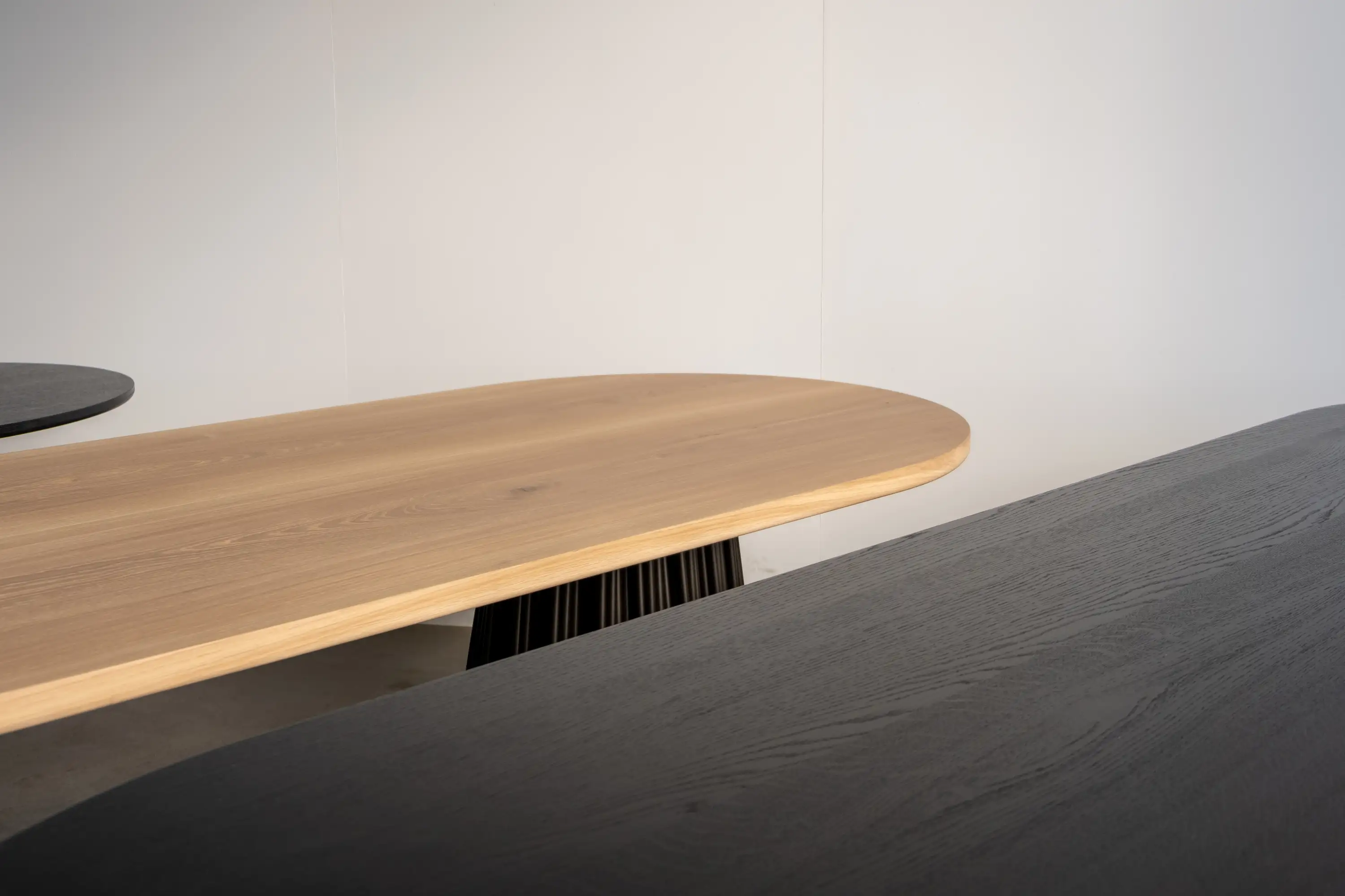 Solid timber top and powder coated steel base